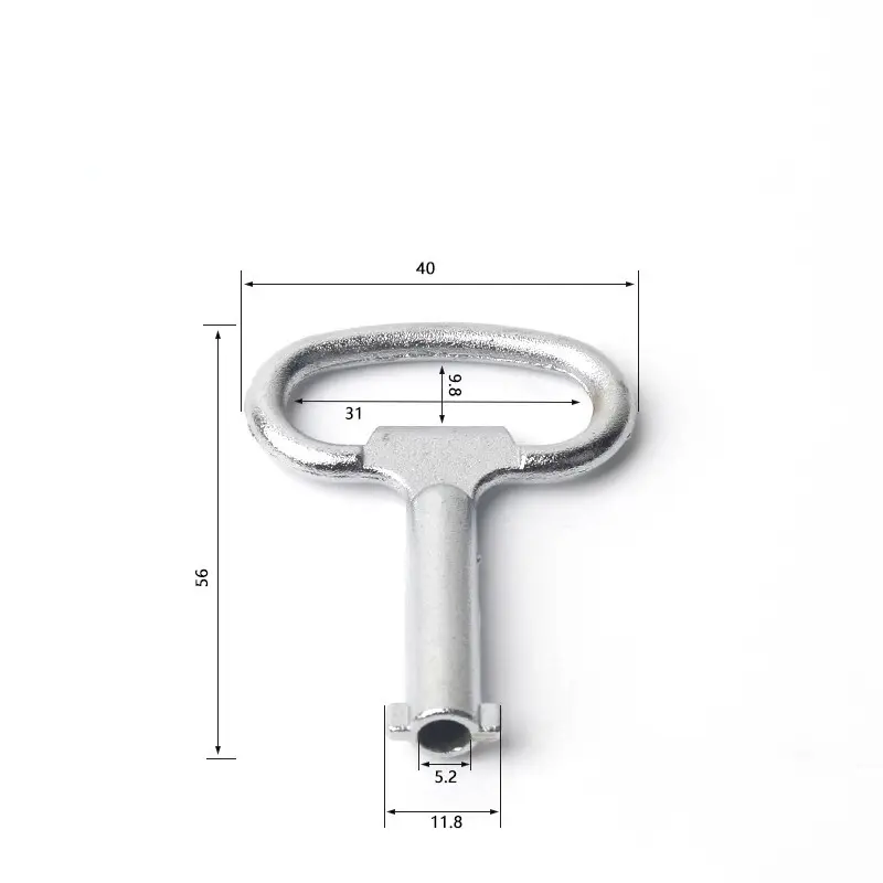 サテン仕上げアルミニウム二重ビットキー:全体の寸法40×56mm、ロックシリンダーセンターの直径5.2mm、ロックシリンダーセンター +二重歯直径11.8mm。