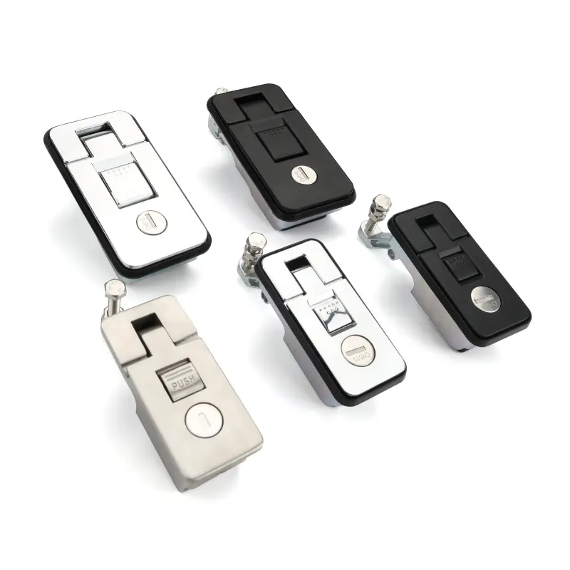 大きなロックは亜鉛合金製で、黒または明るいクロム仕上げからお選びいただけます。小型モデルは亜鉛合金または 304 ステンレス鋼からお選びいただけます。亜鉛合金は黒または明るいクロム仕上げがあり、ステンレス鋼はつや消し仕上げが施されています。