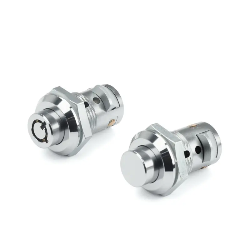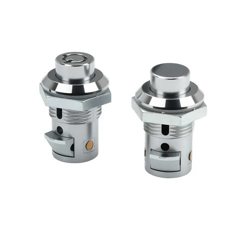 プッシュボタンモデルは、ボタンを押すと自動的に解錠、扉を閉めると施錠される基本的なセキュリティ機能を備えています。ピンタンブラーロックモデルは、一致するキーでのみ回転できるピン機構を採用しており、盗難防止機能を備えています。両モデルとも、亜鉛合金構造により一定の強度を備え、防水パッキンを追加して実用性を高めています。自動販売機用亜鉛合金シリンダー錠は、耐食性を考慮した光沢クローム仕上げです。取り付けられるドアパネルの最大厚さは10mmです。(ステンレス鋼材については、お問い合わせください。現在金型を製作中です)。
