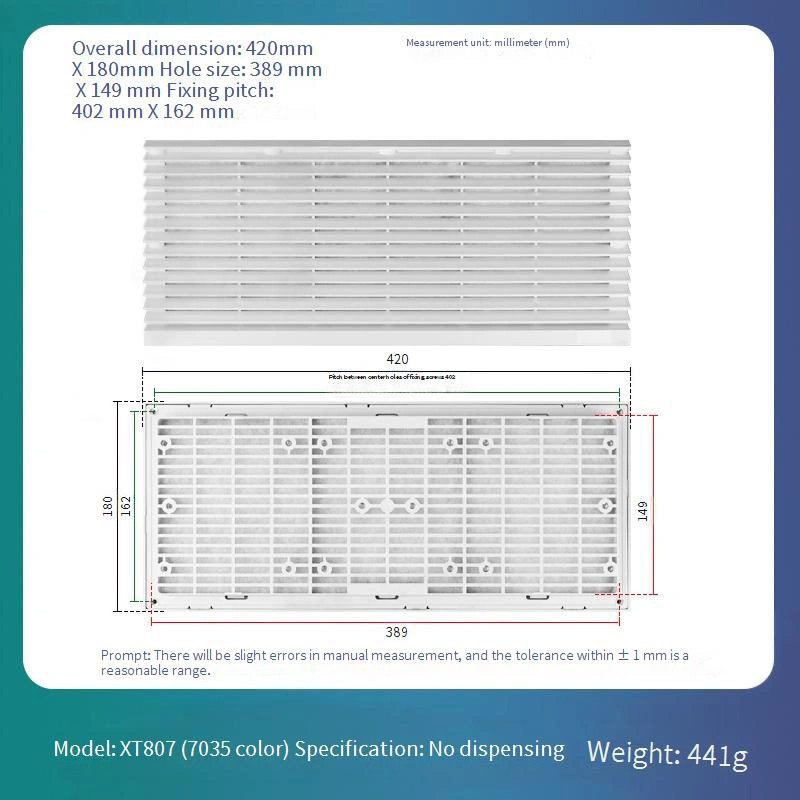 交換可能なフィルターメッシュ設計を採用しており、毎日のメンテナンスと交換が簡単で、長期的な運用コストを大幅に削減します。フレーム構造は標準のホワイトグレー 7035 色でご利用いただけます。耐変形性に優れたABS素材を採用しており、長期安定性を確保します。